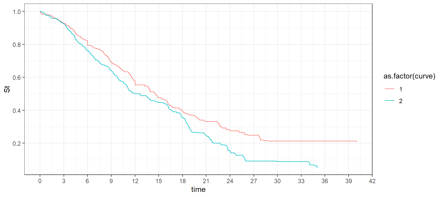 ggplot(aes(x = time, y= St, color = as.factor(curve), group = curve)) +